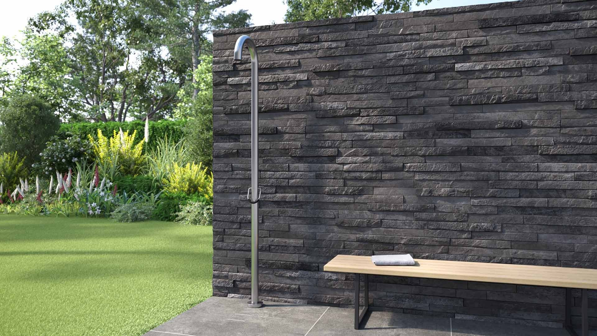 Freistehende Design-Dusche, geeignet für den Garten, fürs Schwimmbad und für die Sauna.