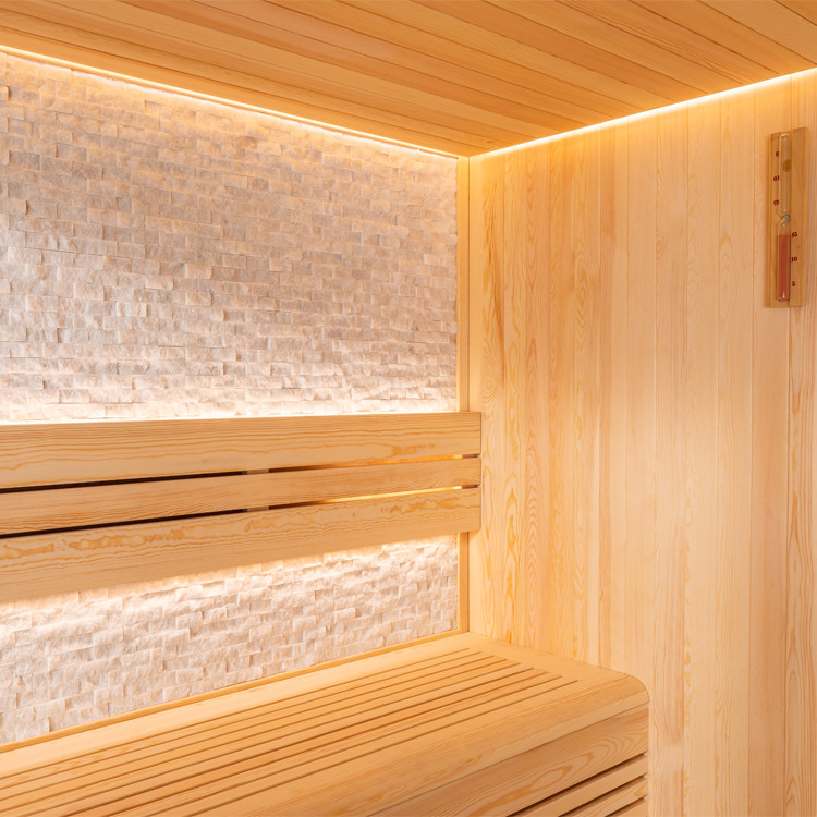 Sauna E1812 finnische Sauna + Sauna B1812 Bi-O Pinienholz mit Steinrückwand